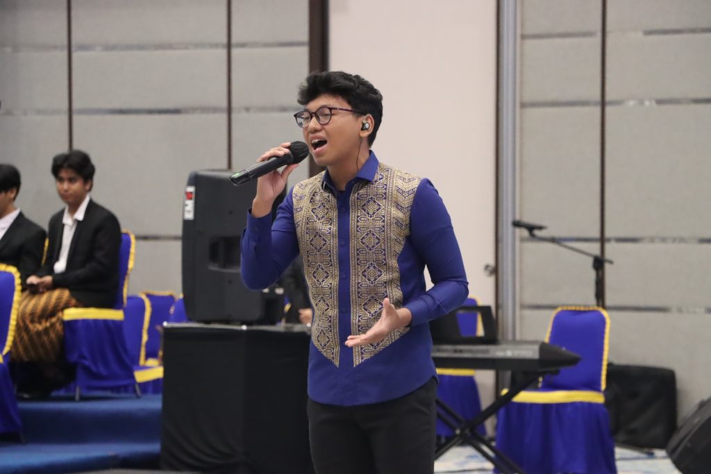 Di pertengahan prosesi, suasana wisuda semakin hangat ketika Noell Arsenio Khen Sitorus, mahasiswa FPIK Undip, tampil membawakan lagu “Senyumlah-Andmesh”. Penampilan tersebut menambah kesan emosional dan memberikan semangat bagi para wisudawan serta keluarga yang hadir.