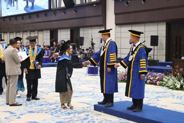 Prosesi wisuda kali ini juga menjadi momen penting bagi FPIK Undip karena salah satu mahasiswanya, Arum Citra Kusuma, yang merupakan lulusan terbaik Program Studi Teknologi Hasil Perikanan, mendapat kehormatan untuk membacakan Teks Janji Alumni di hadapan seluruh peserta wisuda. Pembacaan teks tersebut berlangsung khidmat dan menjadi simbol komitmen para lulusan untuk menjaga integritas, menjunjung tinggi nilai almamater, serta berkontribusi bagi masyarakat dan bangsa.