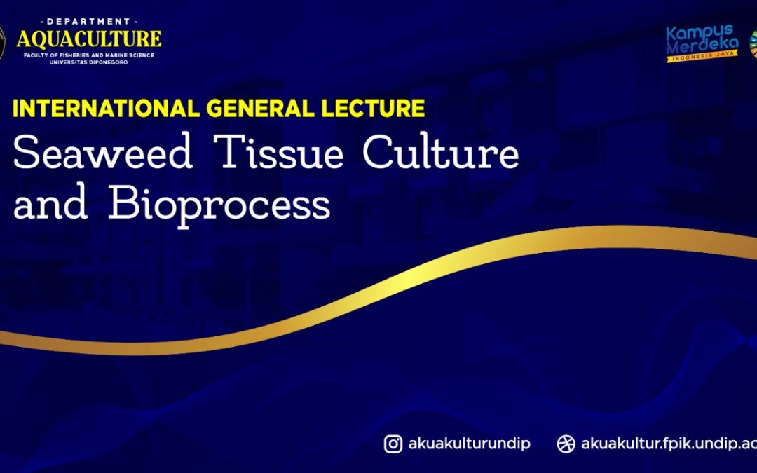 The Aquaculture Department of FPIK held an International General Lecture with the title “Seaweed Tissue Culture and Bioprocess” on Wednesday, 19 October 2022 via the Zoom platform. Seaweed is one of the commodities that has promising prospects, but the availability of high-quality and high-quality seeds and their utilization still needs to be a concern. The activity presented 2 resource persons who were experts in the field of tissue culture and biprocessing, namely Dr. Gabriel Tirtawijaya who is a researcher at Silla University, Korea, Dr. Maya Saptiani who is an alumnus of FPIK Diponegoro University. This event was attended by more than 170 online participants, both from the UNDIP academic community and from other agencies.